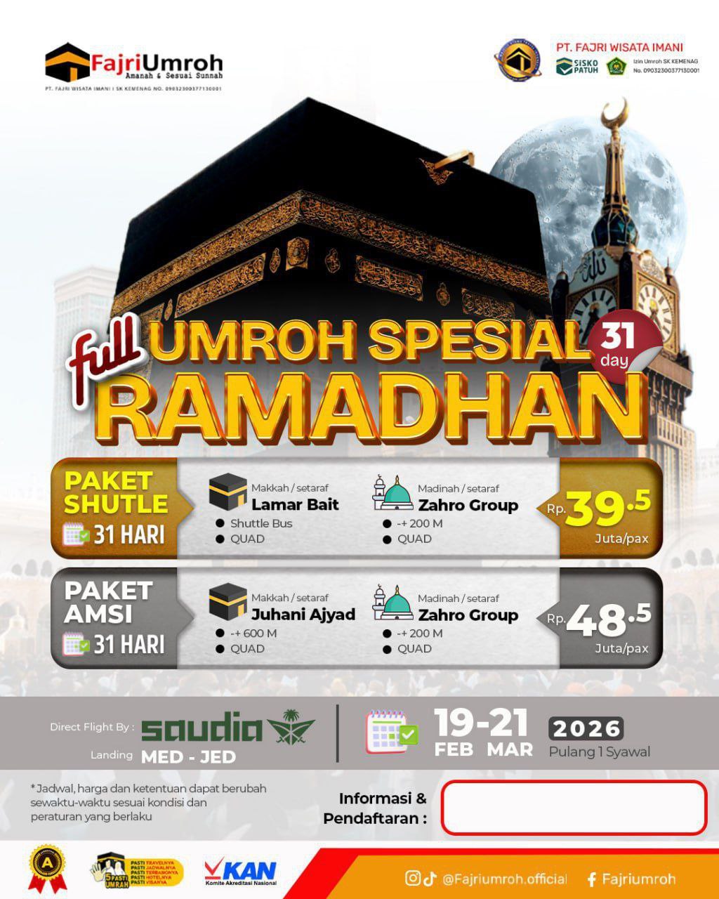 ๐ UMROH FULL RAMADHAN 2026 โ Pulang skitar 1 atau 2 Syawal!!