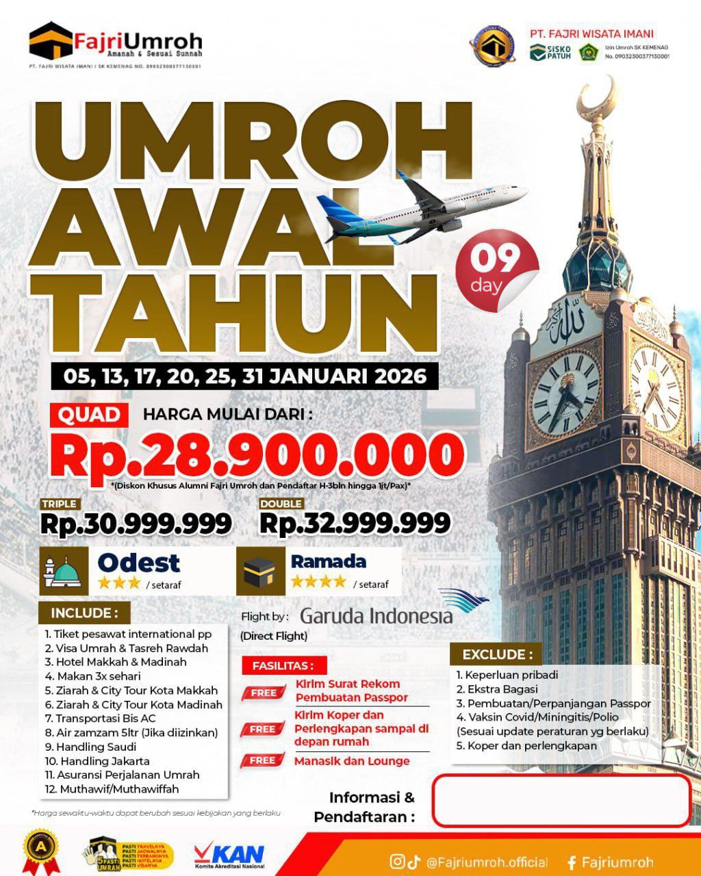 (Diskon Khusus Alumni Fajri Umroh dan Pendaftar H-3bln hingga 1jt/Pax)